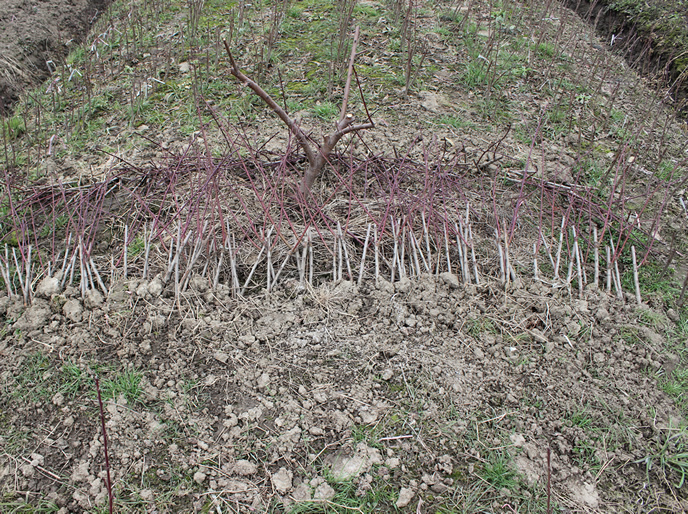 每年利用野生桃核育种,在嫁接时候嫁接上阳山本地品种的种苗,此培育法有效降低了桃树的病菌感染,成活率高。
