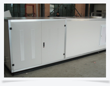 新风空气处理机是提供新鲜空气的一种空气调节设备。功能上按使用环境的要求可以达到恒温恒湿或者单纯提供新鲜空气。工作原理是在室外抽取新鲜的空气经过除尘、除湿(或加湿)、降温(或升温)等处理后通过风机送到室内,在进入室内空间时替换室内原有的空气。当然以上所提到的功能得根据使用环境的需求来定,功能越齐全造价越高。